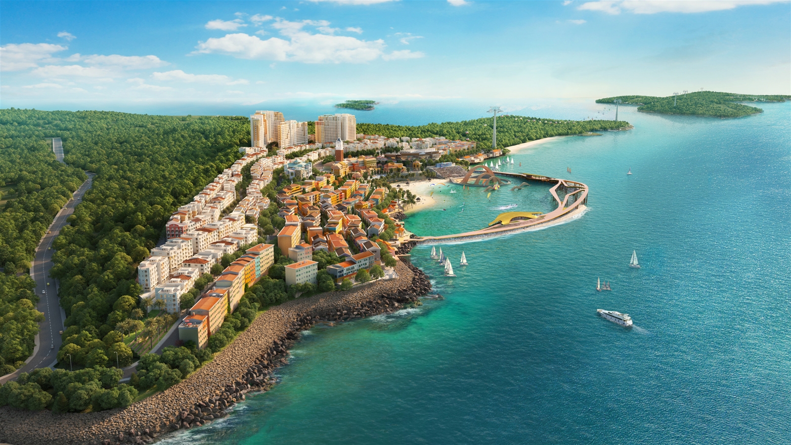 Không dừng lại ở du lịch, Sun Group còn là một trong những doanh nghiệp tiên phong nhận tham gia triển khai các dự án hạ tầng chiến lược như Cảng hàng không quốc tế Vân Đồn, Cảng tàu khách quốc tế Hạ Long, cao tốc Móng Cái - Vân Đồn…
